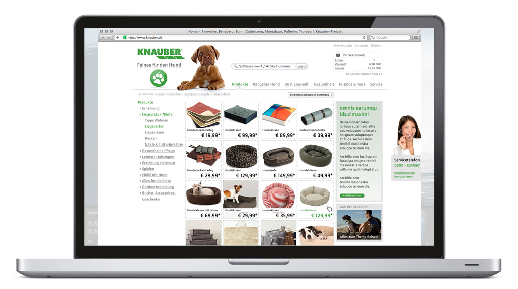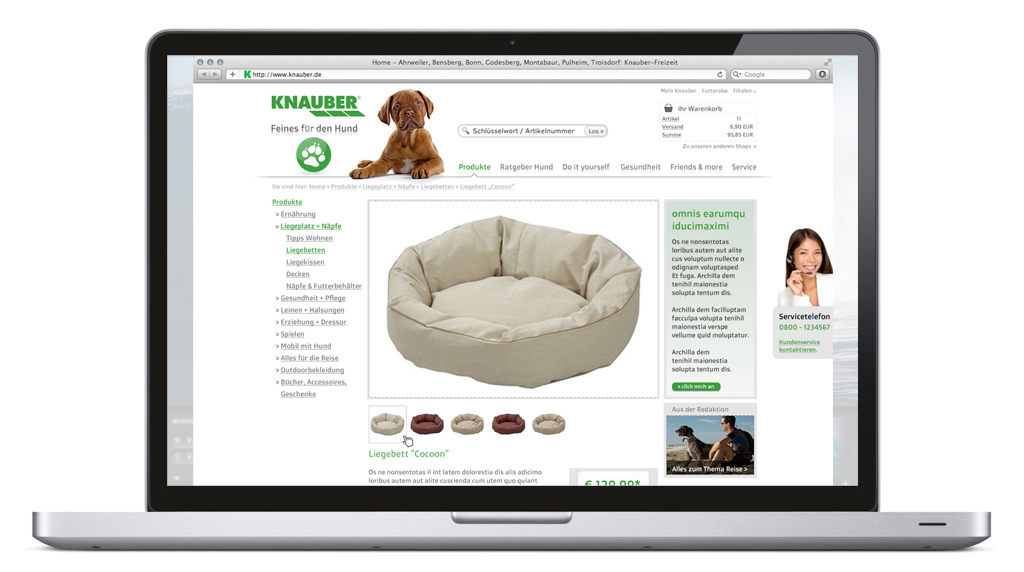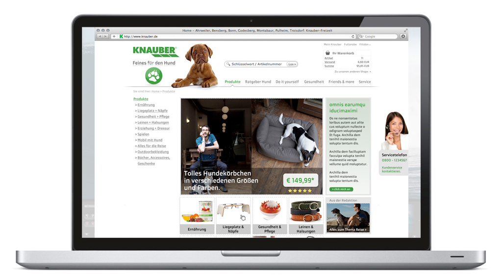 Job: Knauber Freizeitmärkte planen zukünftig den Online-Handel. Dafür entwickelte RLDSGN in Zusammenarbeit mit Büro FRAM ein erstes Look & Feel für den kommenden Online-Shop.